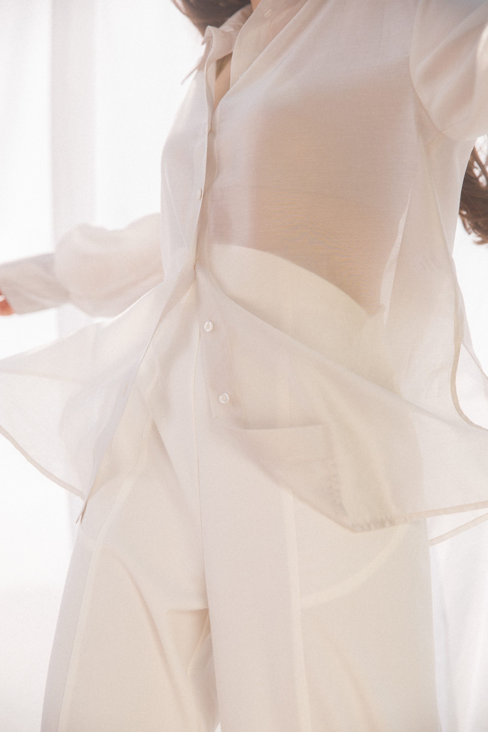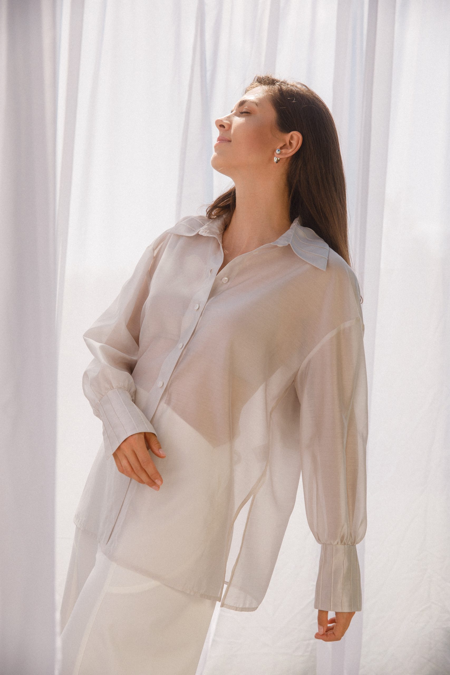 . koszula uszyta z lekkiej, zwiewnej, subtelnie transparentnej tkaniny