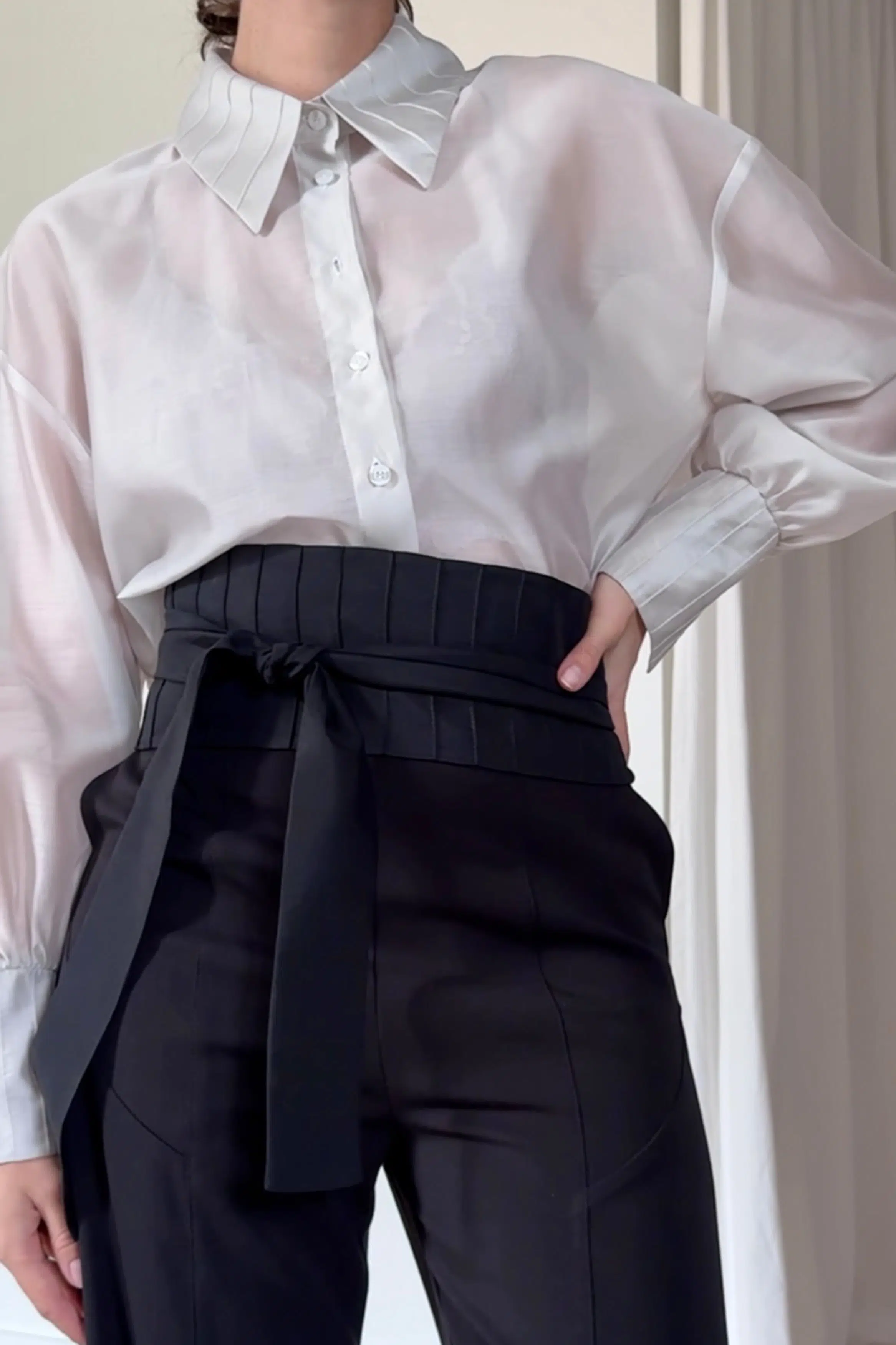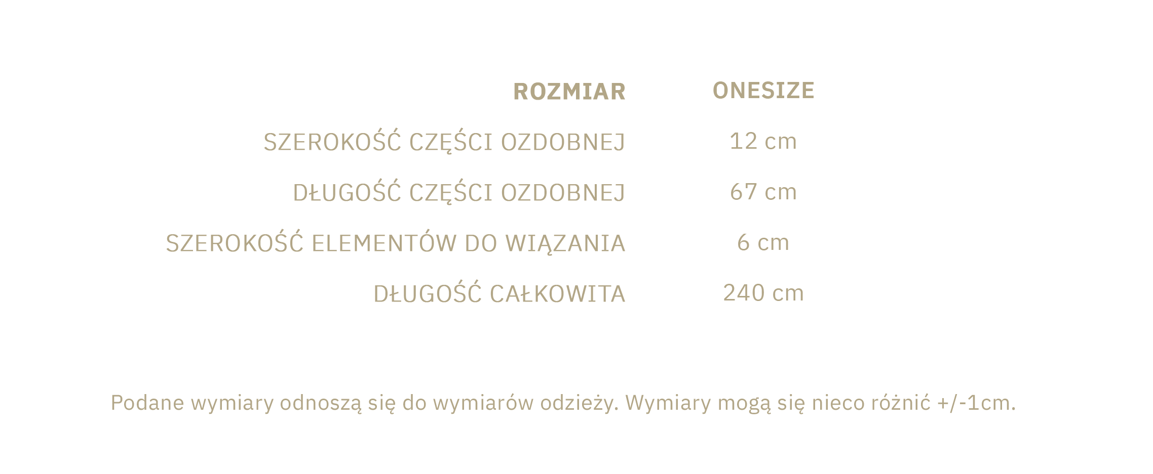 . szerokość pasa – 12 cm, szerokość elementów do wiązania – 6 cm